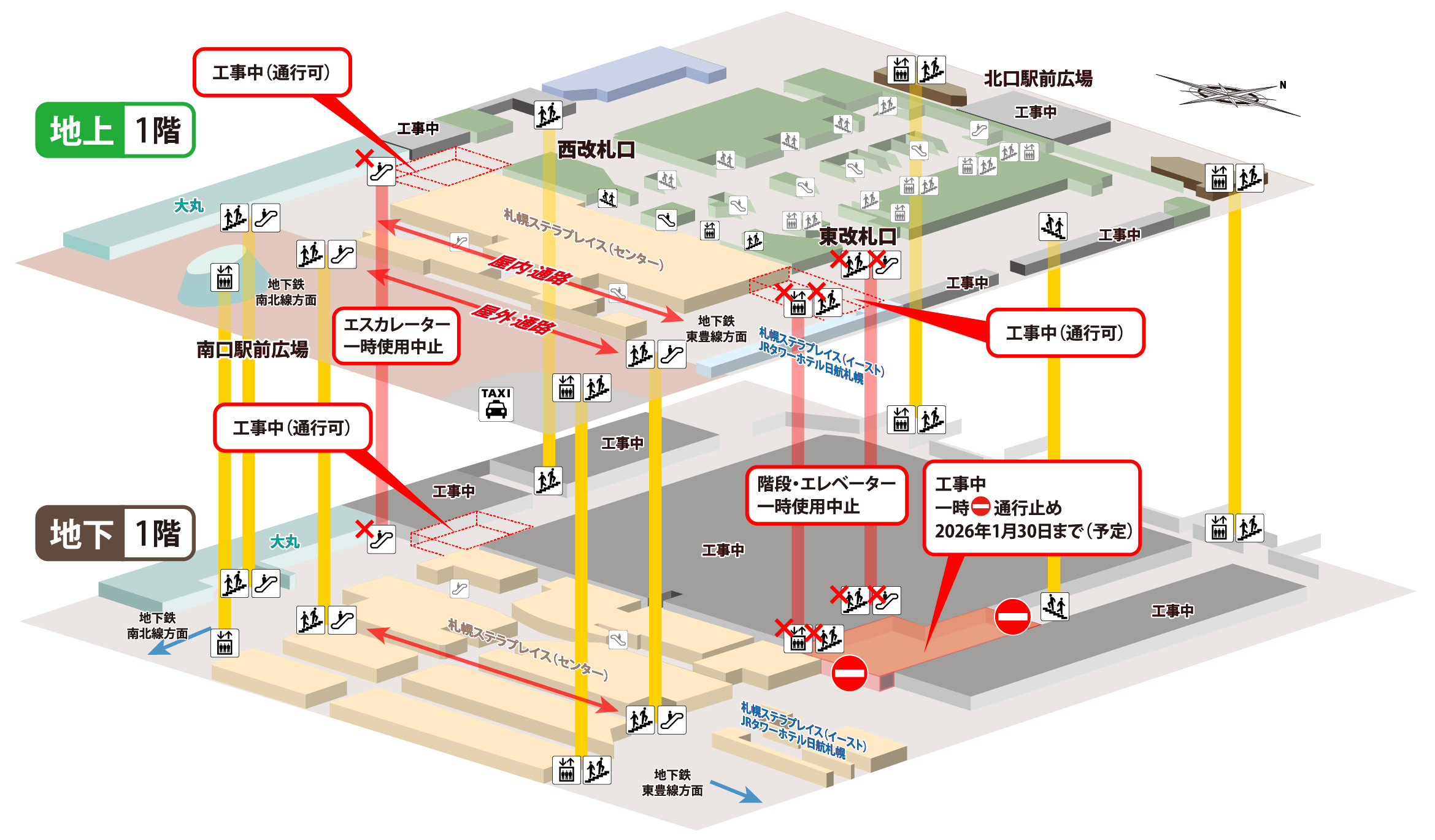 - 2024.01.18北5西1・西2地区第一種市街地再開発事業に伴うお客様通路の切替について