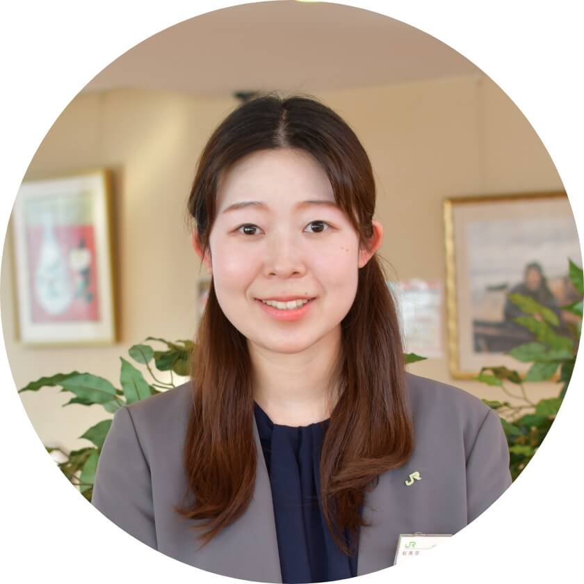 北海道出身入社後は札幌車掌所にて車掌となる。その後、札幌駅に配属となり、主にきっぷの販売やお客様案内を行う。異動となり、運行管理センターにて、輸送指令員を経験し、採用担当へ。道外の大学出身。