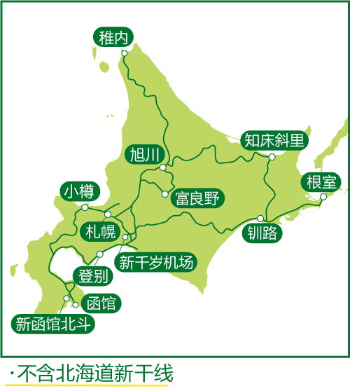 ※札幌-登别区域铁路周游券、札幌-富良野区域铁路周游券不予搭乘JR北海道巴士。