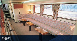 커다란 창문과 지붕의 창문을 통하여 웅대한 홋카이도의 경치를 즐기실 수 있으며, 해방감 넘치는 쾌적한 이동공간을 약속드립니다. 라운지, TV 등의 설비도 준비되어 있습니다.
