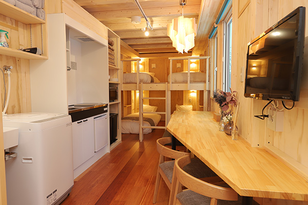 | スマートで快適な宿泊 | チェックインからチェックアウトまでを受付のタブレット端末でスムーズに行えます。ミニキッチン・洗濯機も各部屋にご用意していますので、ご自宅のように快適にお過ごしいただけます。 |