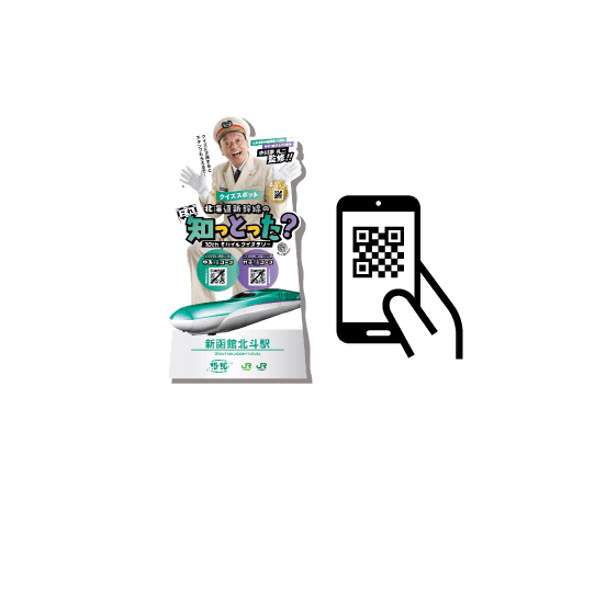 クイズスポット(中川家 礼二さんのパネル)のQRコードを読み取り、クイズに答えて、