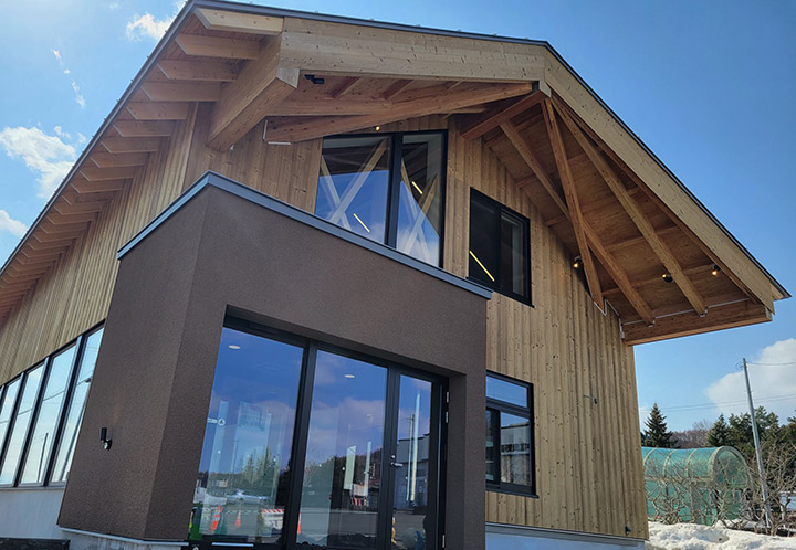 ガラス張りのスタイリッシュな外観が特徴の、JAびえいの直売所。美瑛産のお米や野菜、おしゃれなパッケージの農産加工品が並ぶ他、敷地内の「小麦工房」で作るパンも人気です。直売所機能だけでなく、採れたて野菜や炊きたてのお米の試食コーナーも備えた、美瑛の食のショールームです。