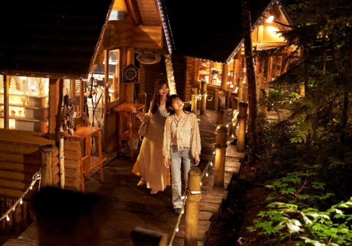 森の中に15棟のログハウスが連なるロマンチック・ショッピングエリア。ここにしかない自然をモチーフにしたクラフト作品をご用意しております。