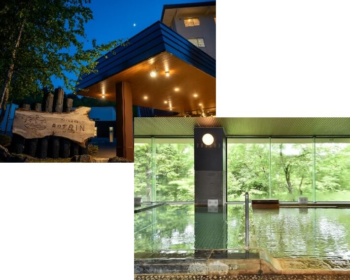 白ひげの滝にも徒歩数分の白金温泉「森の雫 RIN 」と「碧の美 ゆゆ」。 白金温泉は美肌成分と呼ばれるメタケイ酸がたっぷりと含まれるほか、神経痛や動脈硬化にも良いと言われ、別名「杖忘れの湯」とも呼ばれています。そんな白金温泉の源泉100%かけ流しの湯に浸かり、白金の森の息づかいを感じる癒しのひとときをお過ごしください。両館とも日帰り入浴を受け付けているほか、美瑛をはじめ北海道内の素材を活かした料理を味わえるご宿泊もおすすめです。