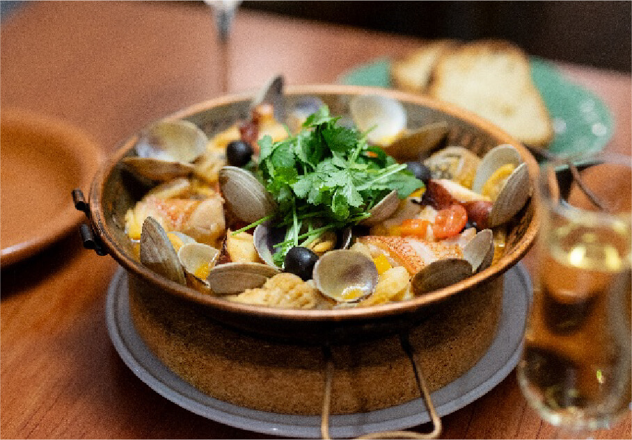 スペイン語で猫のしっぽを意味する「cola de gato」。函館の名店バスクで30年、腕を振るったシェフの料理が楽しめます。人気メニューの一つが、「道南産マダラのニンニクパセリソース」。函館で水揚げされるマダラは、新鮮でおいしく、香り高いソースと相性抜群。たっぷり肥えて身質の良い夏のマダラも、甘みの強いタチを抱く冬のマダラもどちらもおすすめです。